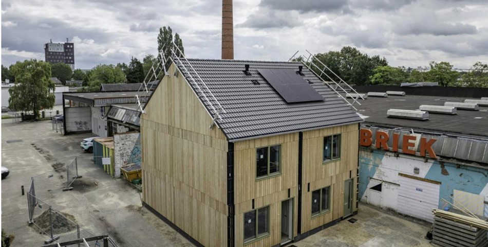 The Aer project, currently underway, features two mock-up homes being constructed on the site of a former fishing net factory near the Apeldoorn train station in the Netherlands. These homes are expected to become future housing options and are designed to be highly sustainable. The entire construction process occurs in a factory setting, utilizing a wood frame structure. The shell of each home can be installed in 3-5 days, with the entire home, including floors, kitchens, plumbing, and technical installations, being completed in just two weeks. The building materials used in Aer contribute to an impressive MPG score (an environmental building performance metric) of less than 0.36, with material-related CO₂ emissions below 110 CO₂ equivalents per square meter. Over 79% of Aer’s material volume is bio-based.