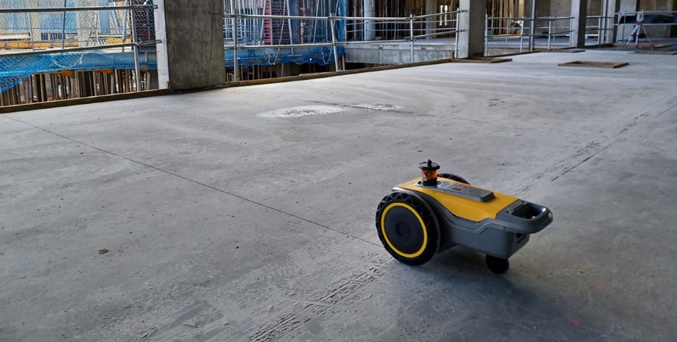 Equipped with wheels and a print head, the HP SitePrint robot demonstrated its ability to reduce drawing inaccuracies and facilitated the preparation of 25,000 square meters of partition walls.