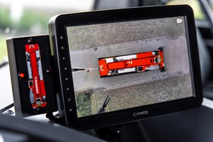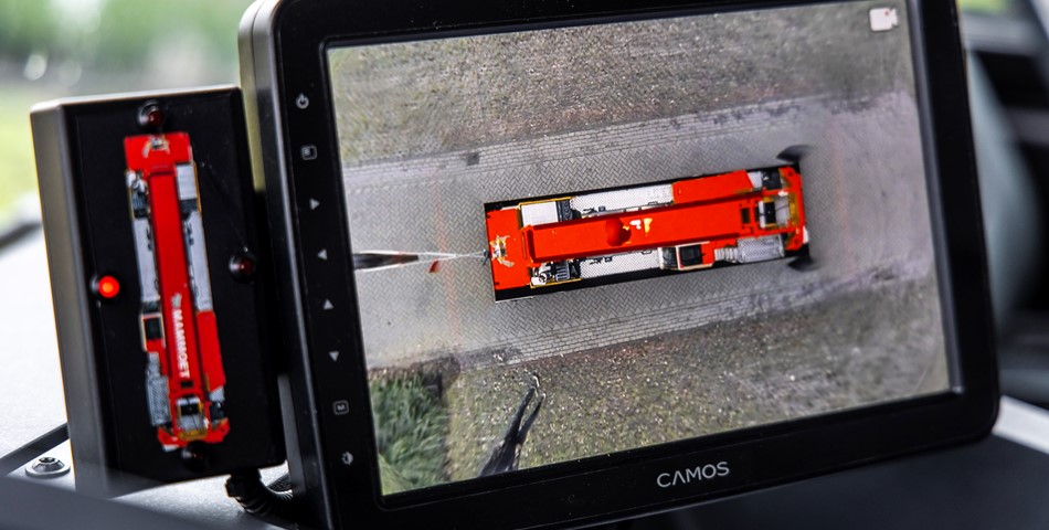 The three-tier system includes Rietveld’s OmniVue 360° camera system. Using a combination of cameras installed on the crane’s chassis, it generates real-time first and third-person images of the vehicle. This gives the driver a full 360-view from both inside and outside the cab, enabling them to see what pedestrians and other road users are seeing.