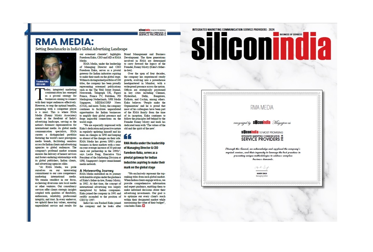 RMA Media, Our Esteemed Business Partner, Recognized Among "India’s 10 Most Promising Integrated Marketing Communication Service Providers 2024" by SiliconIndia Magazine