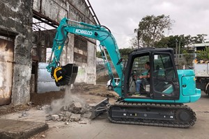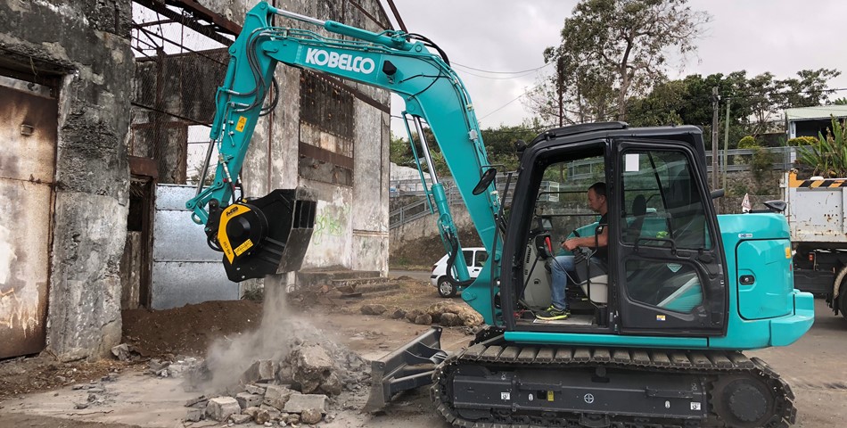 A big housekeeping, and a mandatory request to waste nothing, saw the crusher bucket busy reducing bricks, reinforced concrete, cement to a size that granted the aggregate reuse. This former sugar factory, once the economic lung of this neighborhood, has been given a second wind. This building of 3800 square meters is part of the development project of the town of La Saline carried by the City. The reclaiming job has been carried out directly at the residential site, next to public schools and the city swimming pool, without obstructing population activities. This because all MB units are certificated and designed to reduce noise and dust, while considering reducing emissions and environment preservation.