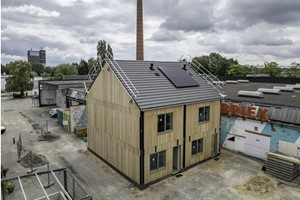 The Aer project, currently underway, features two mock-up homes being constructed on the site of a former fishing net factory near the Apeldoorn train station in the Netherlands. These homes are expected to become future housing options and are designed to be highly sustainable. The entire construction process occurs in a factory setting, utilizing a wood frame structure. The shell of each home can be installed in 3-5 days, with the entire home, including floors, kitchens, plumbing, and technical installations, being completed in just two weeks. The building materials used in Aer contribute to an impressive MPG score (an environmental building performance metric) of less than 0.36, with material-related CO₂ emissions below 110 CO₂ equivalents per square meter. Over 79% of Aer’s material volume is bio-based.