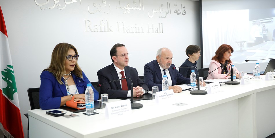The speakers’ panel comprised H.E. Mr. Avedis Guidanian; Minister of Tourism, Mrs. Francesca Zadro; Trade Commissioner of the Italian Trade Agency, Mrs. Marie Maamari; Directrice Bureau Business France Liban, Dr. Mona Wahba; Commercial Counselor of the Embassy of the Arab Republic of Egypt, and Mr. Albert Aoun; Chairman of IFP Group.